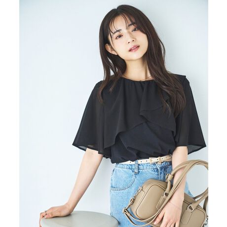 ひらりと揺れるケープ風デザインでフェミニンムードを纏う一枚。