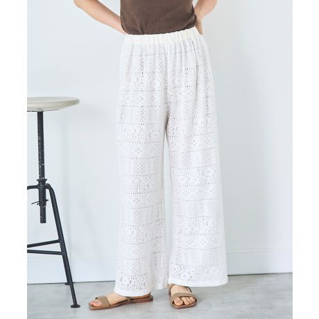 夏の装いにぴったり♪繊細なクロシェレースがスタイリングに軽やかな表情を添えるリラックスパンツ。