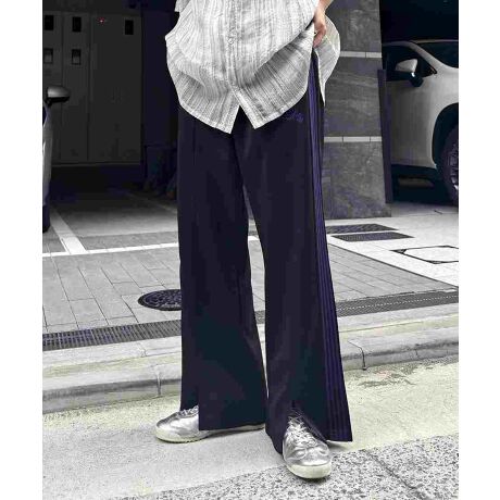 サイドにラインが入ったトラックパンツ。