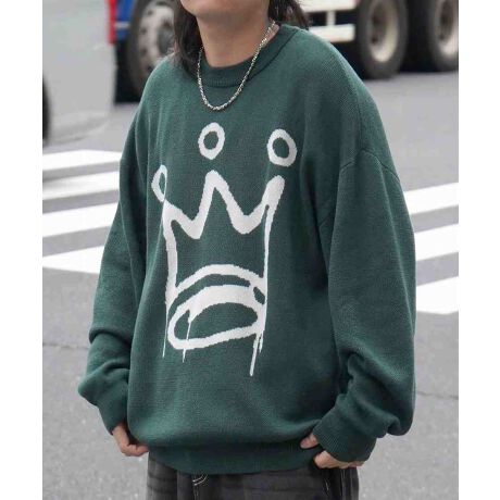 優しいニットにかっこいいストリートデザインがいいコントラストに。