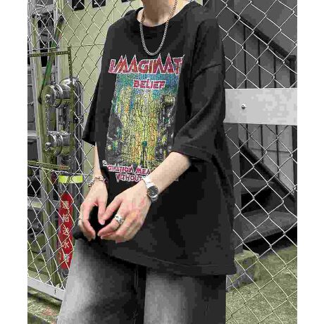 ILL'S ロックプリント レトロ ビッグシルエット半袖バンドTシャツ