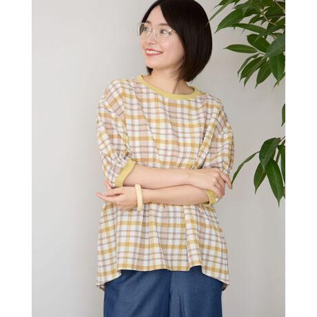 サッカーチェックブラウス