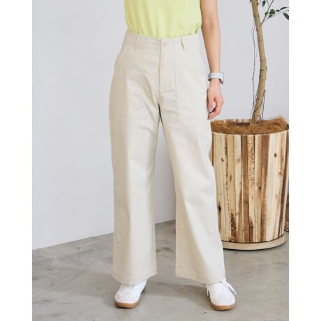 ハリのあるストレッチ素材を使用しています。様々なコーディネートに活躍するストレートシルエット。合わせやすいベージュとカーキの2色の展開です。