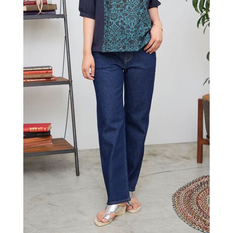 今期は程よく厚みを感じる11.5オンスのデニム地をセレクト。厚みが増した事で今の気分にフィットする1本に仕上がりました。ウエストからヒップはすっきり、少し細みなストレートの筒部分が足を真っすぐに見せ女性らしくヘルシーにお召しいただけます。ポリウレタンの効果でヨコ方向に伸縮するため強張り無く、立つ、座るの動作もスムーズ。ワンウォッシュで仕上げたネイビーカラーは砕け過ぎず清潔感もしっかりキープ。ももやヒップの色落ち、擦れなどダメージ加工を施したブルーカラーも洒落た雰囲気が出ます。仕上げにリップやジュエリーで光をプラスすると、洗練されるのでおすすめです。