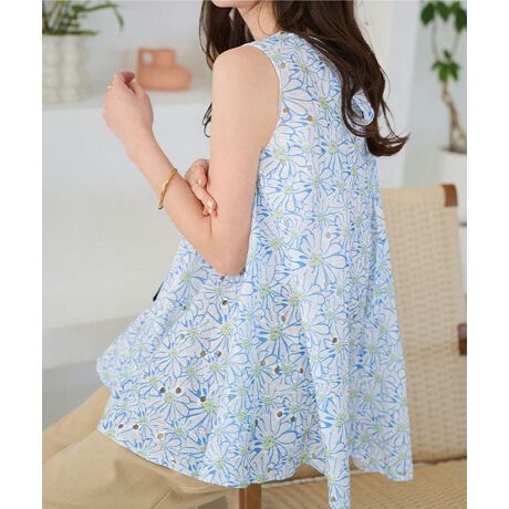 パンチングレースのようにあえて穴の開いた涼し気な花柄生地が、着るだけで華やかな印象に仕上げます。