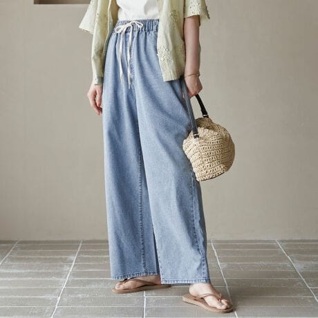 風をまとうような軽やかさが魅力のワイドデニムパンツ。