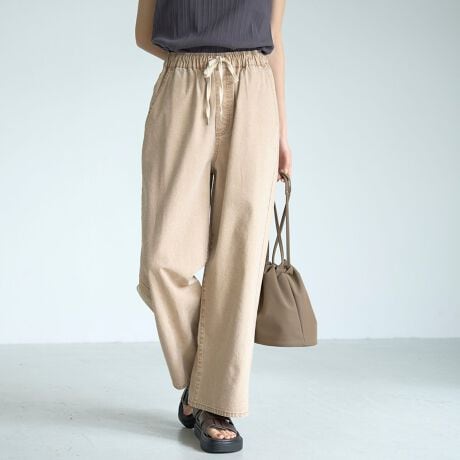 総ゴム仕様のウエストでストレスフリーな着心地に加え、調整可能なウエスト紐付きで、自分にぴったりのフィット感に。