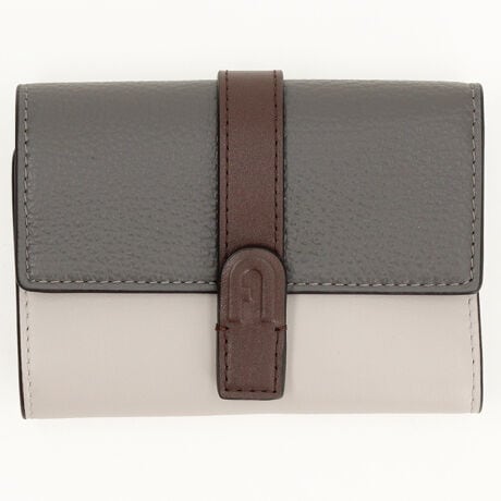 上質なクラフツマンシップと実用性を兼ね備えたフルラ グラツィア(Furla Grazia) ウォレット。スムースレザーとコントラストカラーのグレインレザーを組み合わせ、アイコニックなアーチロゴをホットプレス加工したプレススタッズ式タブをフロントに配しています。必要な物を整理して持ち運べるよう、計算された内部構造を備えた3つ折り財布です。※こちらはフルラの公式オンラインストアです。修理やアフターサービスにつきましては、マルイカスタマサポートセンターへご連絡ください。