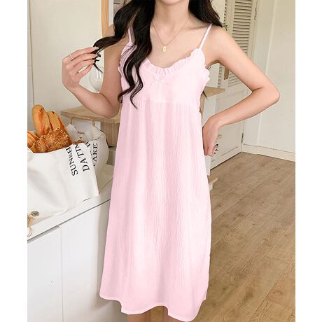 柔らかく肌触りの良い素材を使用したキャミソールワンピース。胸元には繊細なレースとリボンがあしらわれ、優雅で可愛らしいデザインです。ゆったりとした着心地で、リラックスしたひとときを楽しむのにぴったりなアイテム。寝室やリラックスタイムに最適なルームウェアです。