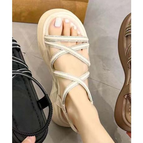 細めのロープストラップが特徴的な厚底サンダル。複数のロープストラップが足元をしっかりホールドし、デザイン性と安定感を兼ね備えています。4cmの厚底ヒールが、スタイルアップを叶えながらも快適な履き心地を提供。シンプルでモダンな印象のデザインは、カジュアルからリゾートまで幅広いシーンで活躍します。