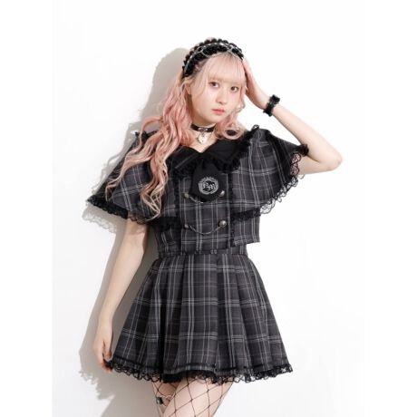 刺しゅう入りのミニネクタイやケープ付きで、ゴシックな雰囲気を漂わせるセットアップ。