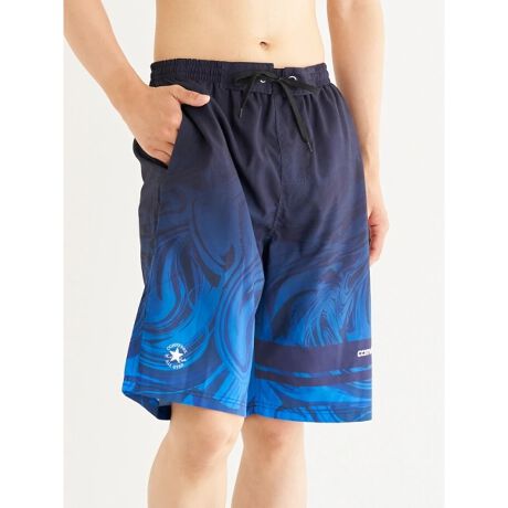 [型番:25250574485]グラデーションのマーブル模様に裾ラインをあしらったサーフパンツ。サイドのポケットにはファスナーが施されているのもポイントです。ウエストはゴムギャザー仕様で着用しやすく、ドロスト紐でフィット調整可能。通気性の良いメッシュインナー付き。プールや海などのリゾートからアウトドアなど、様々なシーンにも活躍してくれるアイテムです。モデル(エンジ/紺/黒着用)身長:182cmLサイズ着用