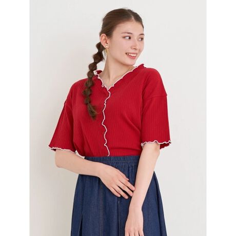 カジュアルさの中にもガーリーなアクセントの詰まった1枚で可愛い優秀トップス。