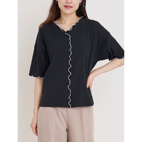 カーディガン風のフェイクデザインがアクセントになったトップス。