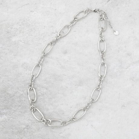 大胆なボリューム感のあるチェーンデザインが魅力で、シンプルなコーディネートに華やかさをプラス。