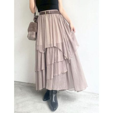 <b>【華やかな揺れ感を楽しむブライトシアーティアードスカート】</b>