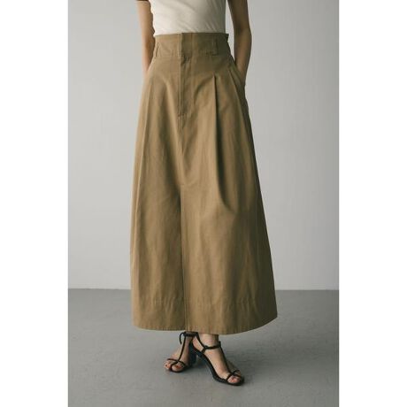 [型番:500IST31-4741]モデル身長172cm(Mサイズ着用)深めに入ったスリットが大人の抜け感をプラスしてくれるチノスカート。フロントに入った深めのダブルタックが動きのあるシルエットに導きます。ウエストバックゴム仕様。ストレッチなし、透け感なし。【お手入れ方法】マシンウォッシュ可
