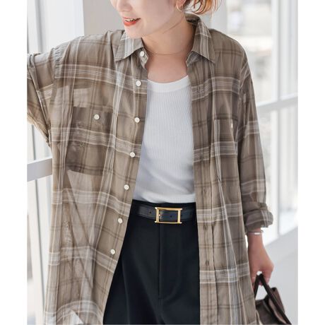 素材の透け感や軽さで大人が着れるチェックシャツに仕上げています。