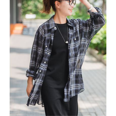 素材の透け感や軽さで大人が着れるチェックシャツに仕上げています。