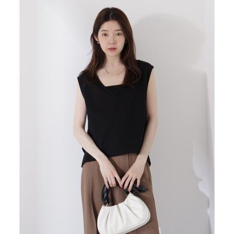 大人カジュアルな雰囲気を引き立てるカットソーです。デコルテをシャープに見せるVネックが涼しげな印象。深いVネックなので、お持ちのベアトップなどのインナーを合わせるのがおすすめです。後ろはタックを入れて程よいフォルムを出しているので、パンツと合わせても女性らしいコーディネートが叶います。