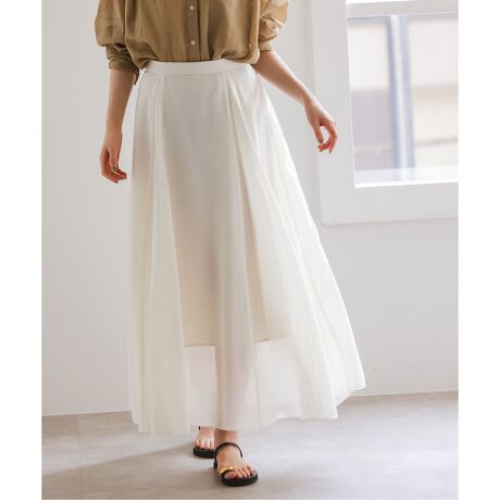 表情感のあるシアーなキュプラ混素材で仕立てた、繊細で柔らかな雰囲気を醸し出すロングスカート。