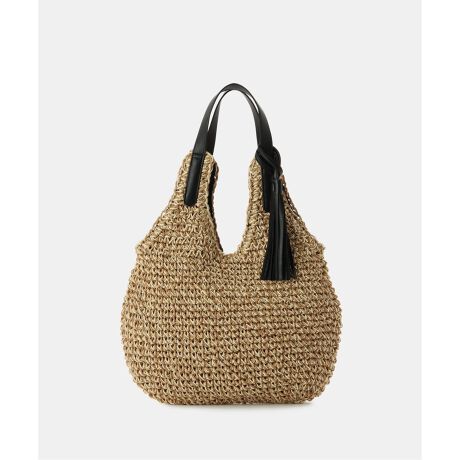 肩掛けができるのでデイリー使いにおすすめです。本体は2色ペーパーのミックス編みで立体感のある仕上がりに。口元には開け閉めが楽ちんなマグホック仕様です。