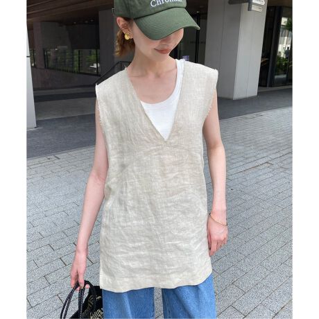 リネンノースリーブブラウス