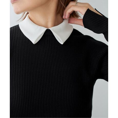布帛襟は取り外し可能なので、外してベーシックなリブニットとしてもお使いいただけます。