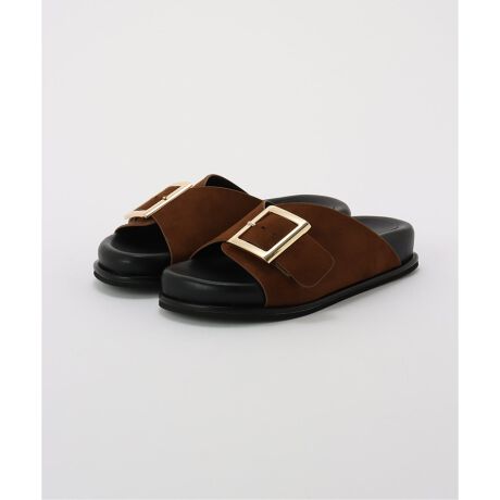 大きめバックルがアクセントになるベルトサンダル。