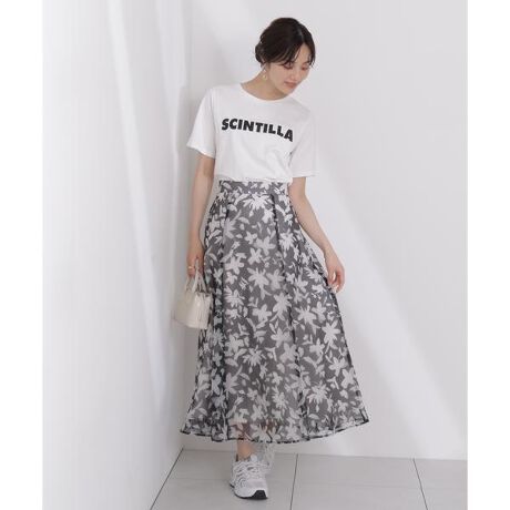 シアー素材にPROPORTIONオリジナルのペイントフラワーをプリントしたスカートです。落ち着いたカラーのペイントフラワーなので甘くなりすぎない印象。後ろウエストはゴム仕様なのでフィットしながらラクなはき心地です。キレイめトップスと合わせるのはもちろん、Tシャツと合わせればカジュアルダウンも楽しめます。