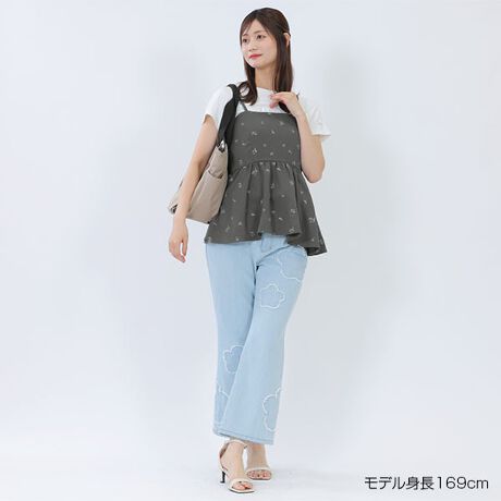 リアルデイジーを全面に刺繍したビスチェ。◆ポイント・キャミソール型・ナチュラルカラー・同系色の刺繍が落ち着いた雰囲気・BACKはゴム仕様・肩ひもは長さ調節可能・開きなし(頭から被るプルオーバータイプ)◆カラー展開・グレー・ベージュ◆コーディネートパンツとセットアップで夏らしい涼しげなスタイルが完成します。インナーにはTシャツやタンクトップを合わせるのがおすすめ。[型番:225-102803]