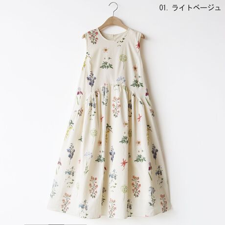 ボタニカルプリントノースリーブワンピース[14956222]