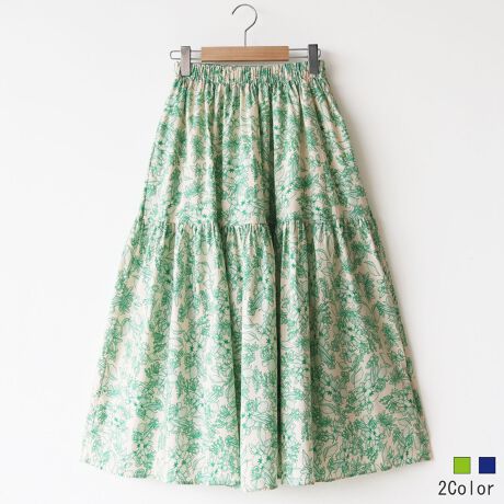 ベジタブルの総柄が目を惹くギャザー切り替えスカート。