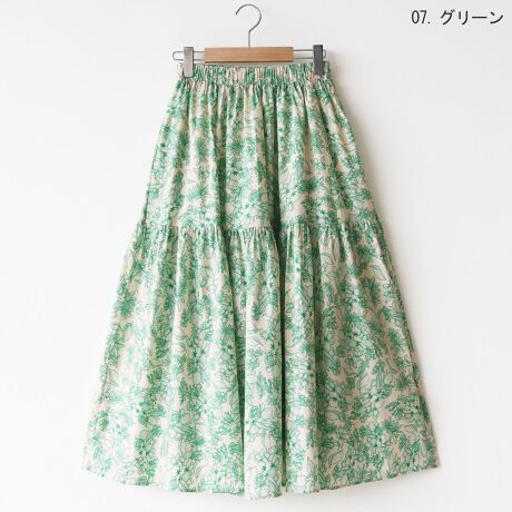 ベジタブルの総柄が目を惹くギャザー切り替えスカート。