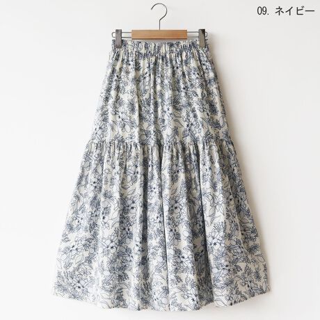 ベジタブルの総柄が目を惹くギャザー切り替えスカート。