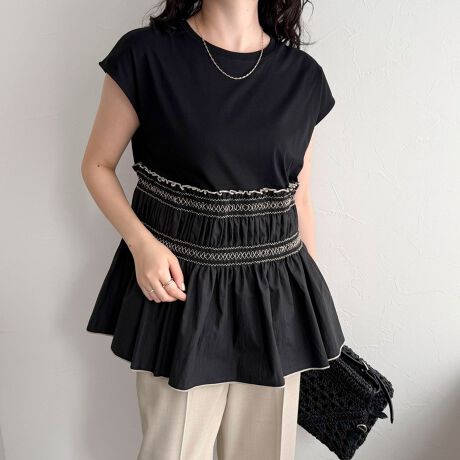 華やかさとリラックス感を両立したスモッキングフレンチプルオーバー