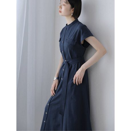 【洗える】ポケットフレンチスリーブシャツワンピース