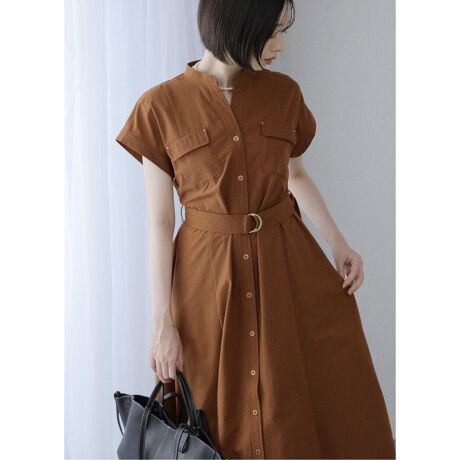 【洗える】ポケットフレンチスリーブシャツワンピース