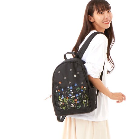 「glanta」フラワー&ドット刺繍ラウンドリュック