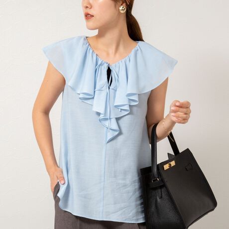 シアーラッフルノースリーブブラウス