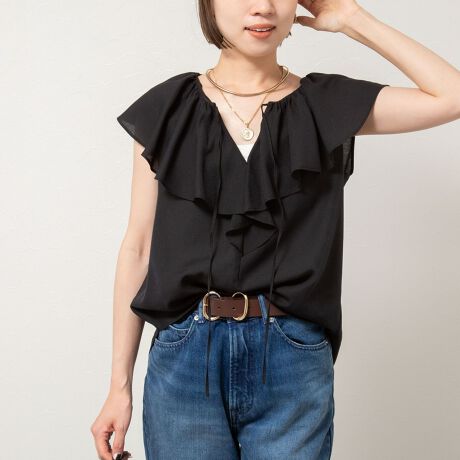 シアーラッフルノースリーブブラウス