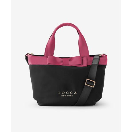 ボディーのナイロンはブラック/アイボリー/グレー/ピンクから、リボンはブラック/ベージュ/ピンクからチョイス可能。ロゴはシンプルなテキスト「TOCCA NEWYORK」またはホールマークをお選びいただけます。組み合わせるカラーやロゴデザインによってモダン・ロマンティックどちらにもアレンジいただけます。