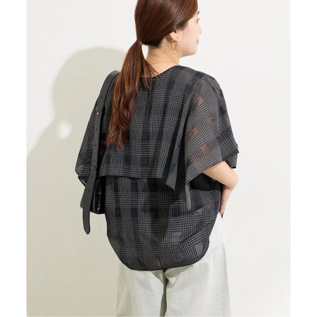 ケープフォルムチェックブラウス