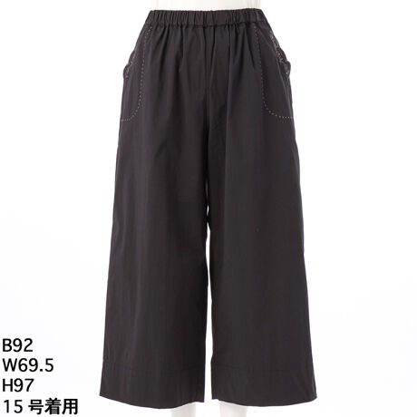 [15〜 19号 ]コットンナイロンストレッチ スカラップ刺繍ワイドパンツ