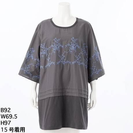[15〜 19号 ]コットンローンコード刺繍+ビーズ+天竺チュニックカットソー