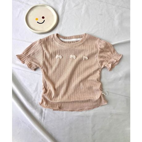 フロントに小さなリボンがあしらわれた、ガーリーなTシャツ。