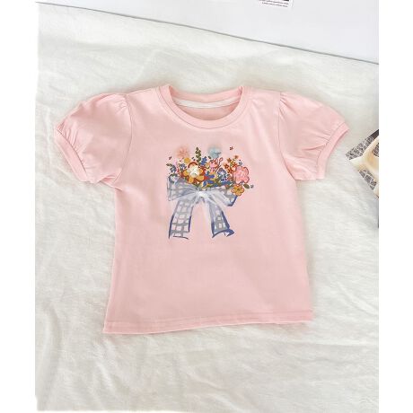可愛らしいフラワープリントが施された、ふんわりシルエットのTシャツ。やわらかなパフスリーブデザインが、ナチュラルなガーリー感をプラス。シンプルながらも華やかな印象で、デイリーコーデにぴったり。