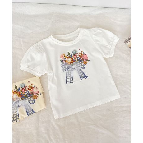 可愛らしいフラワープリントが施された、ふんわりシルエットのTシャツ。やわらかなパフスリーブデザインが、ナチュラルなガーリー感をプラス。シンプルながらも華やかな印象で、デイリーコーデにぴったり。