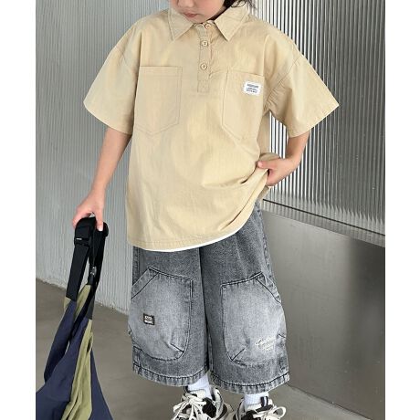 【aimoha-KIDS-】キッズ カジュアルベーシック半袖シャツ