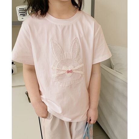 【aimoha-KIDS-】キッズ 立体刺繍 ラビットTシャツ